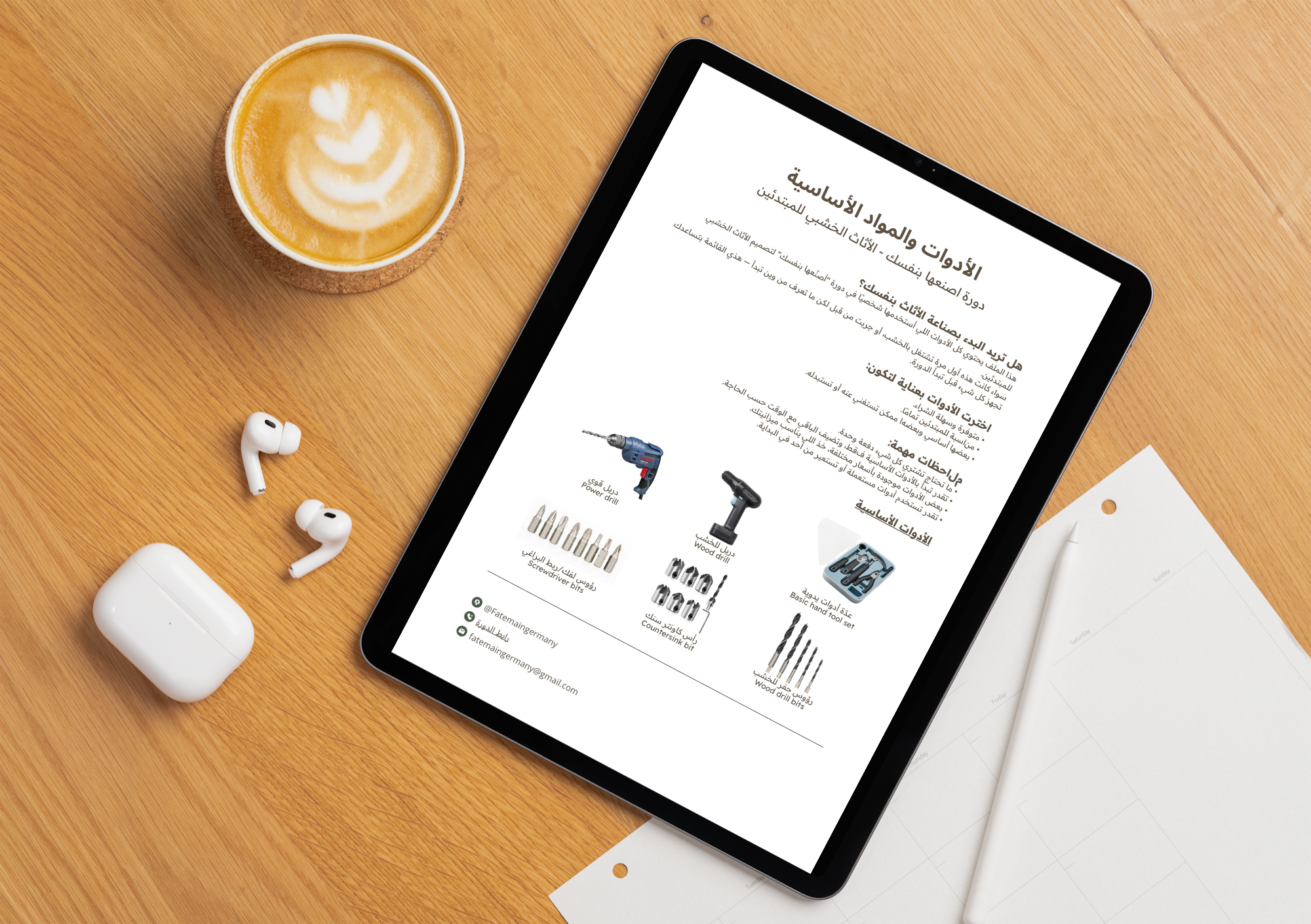حمّل ملف مجاني يشرح لك الأدوات الأساسية والبديلة اللي تحتاجها كمبتدئ في صناعة الأثاث.